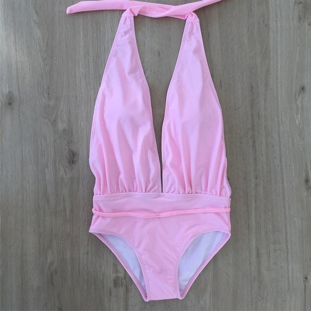 V Neck One Piece Swimwear Women Sexy Swimsuit Print Push Up Swimming Suit Halter 2020 Bathing Suit Femme Maillot De Bain