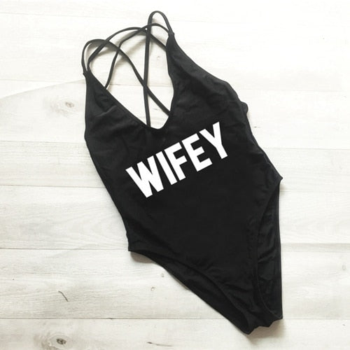 Item Type: One Pieces Sport Type: Swim Material: Nylon Material: Polyester Material: Spandex Gender: Women Brand Name: Matteobenni Pattern Type: Letter Model Number: Fashion Funny Bride WIFEY Fit: Fits true to size, take your normal size