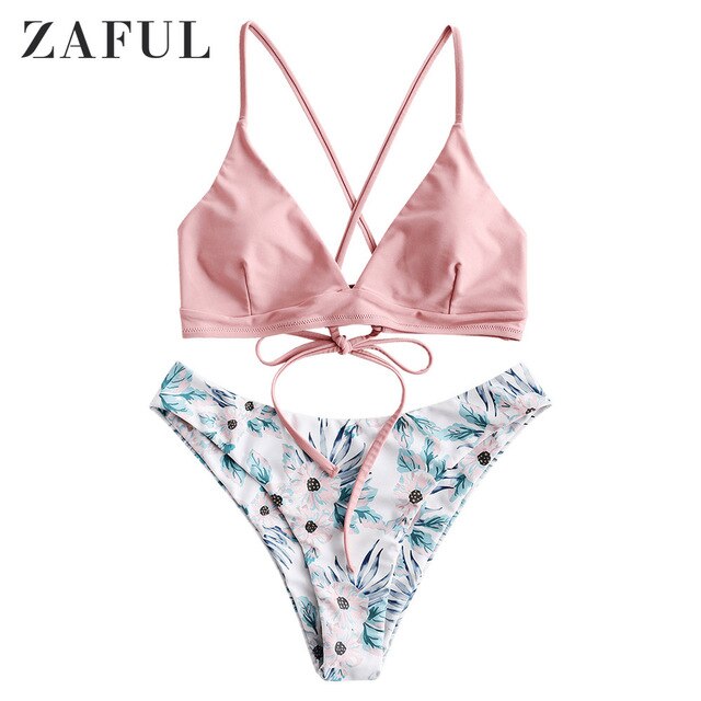 Model Number: ZAFUL Criss Cross Floral Padded Bikini Set